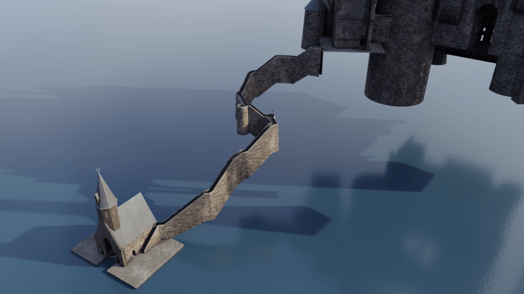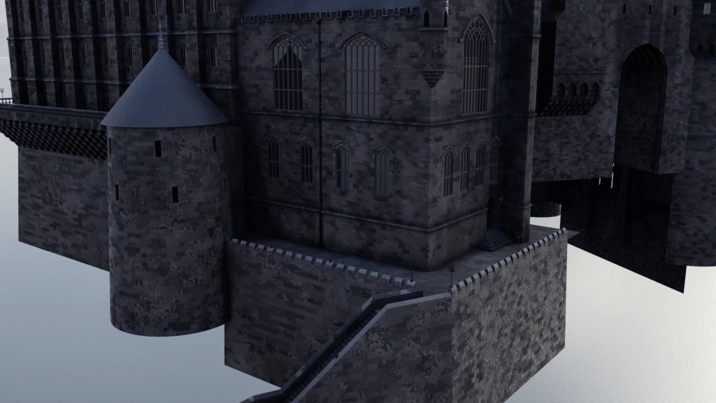 I don’t think you’re getting enough credit for how fiendishly clever and beautiful the procedural texturing is, by the way – it adds so much to the renders when they’re not just a grey box, and the castle is looking more and more amazingly detailed with every update! I think shot 142 (Harry’s view of the castle!!) has to be my new favourite thing you’ve posted, and I’ve clicked on every single image since the start, haha. Talk about your missing shot… what a beautiful lost frame.